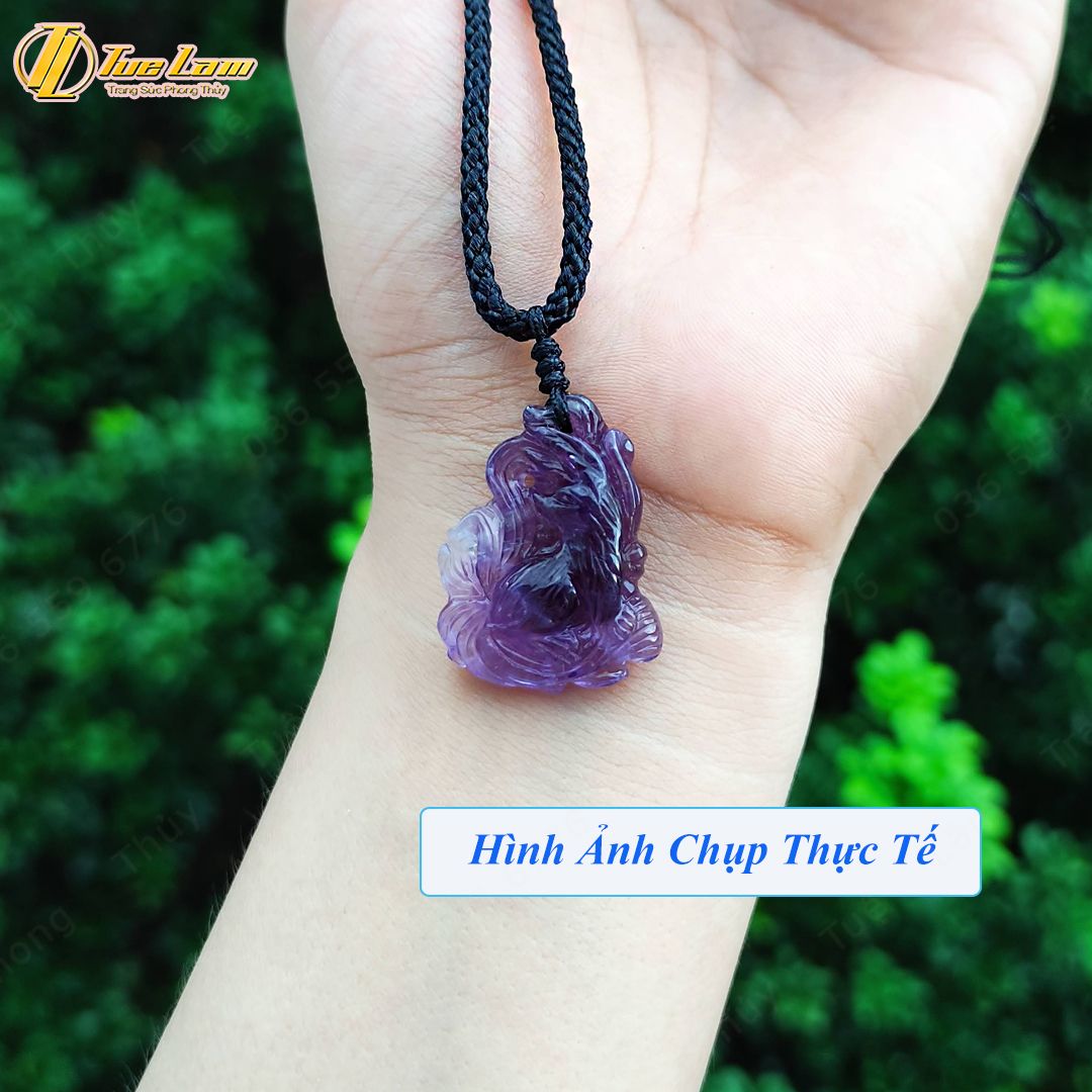 Dây chuyền mặt hồ ly chúa chín đuôi thủng đá thạch anh tím hợp mệnh hỏa thổ may mắn trợ duyên