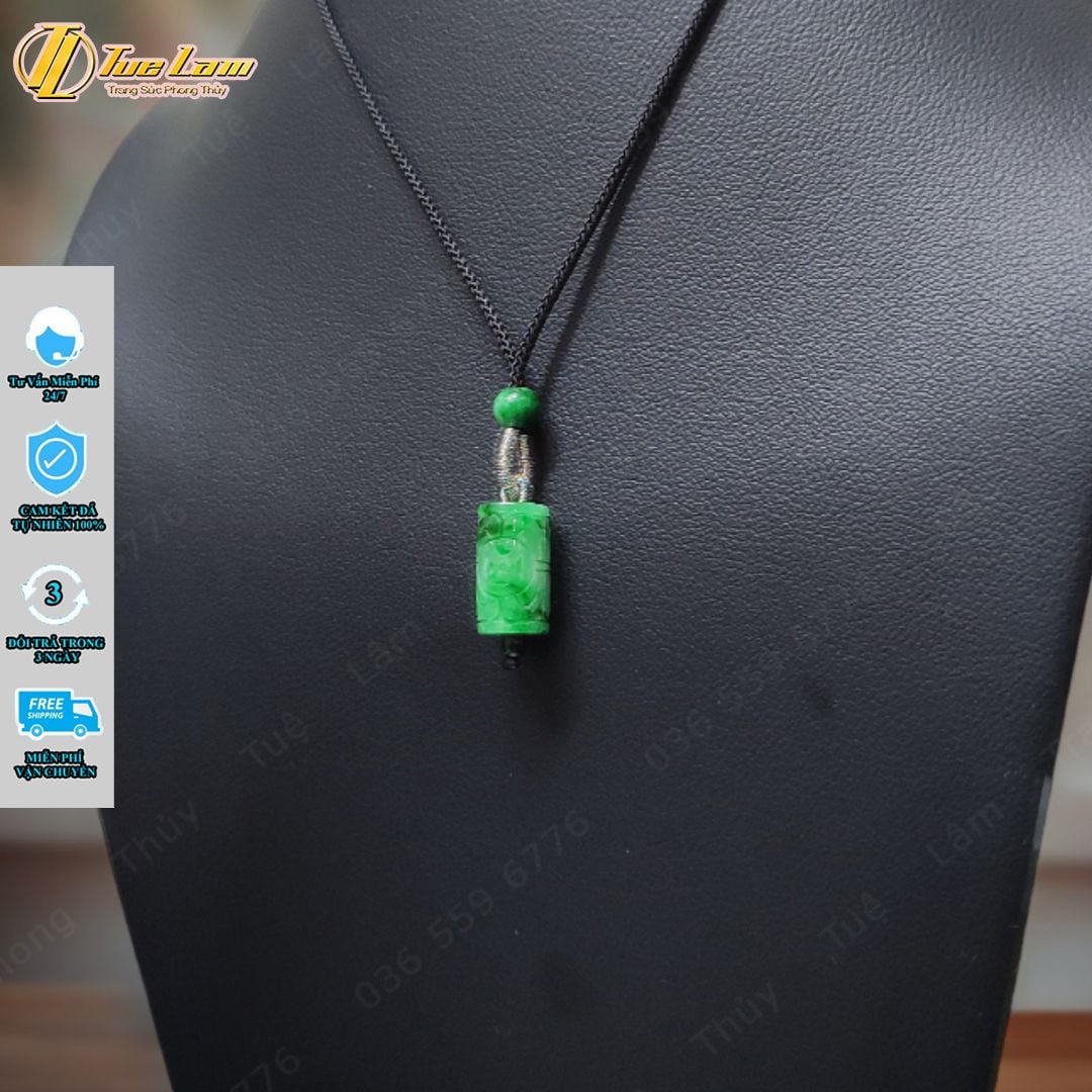 Dây chuyền mặt lu thống ngọc sơn thủy xanh chạm họa tiết hợp mệnh may mắn chiêu tài lộc vạn sự hanh thông