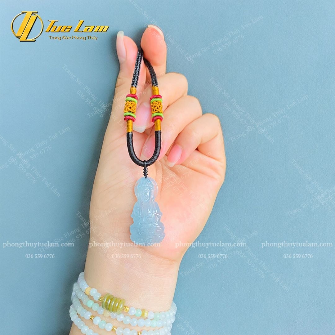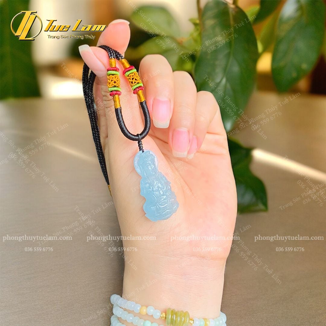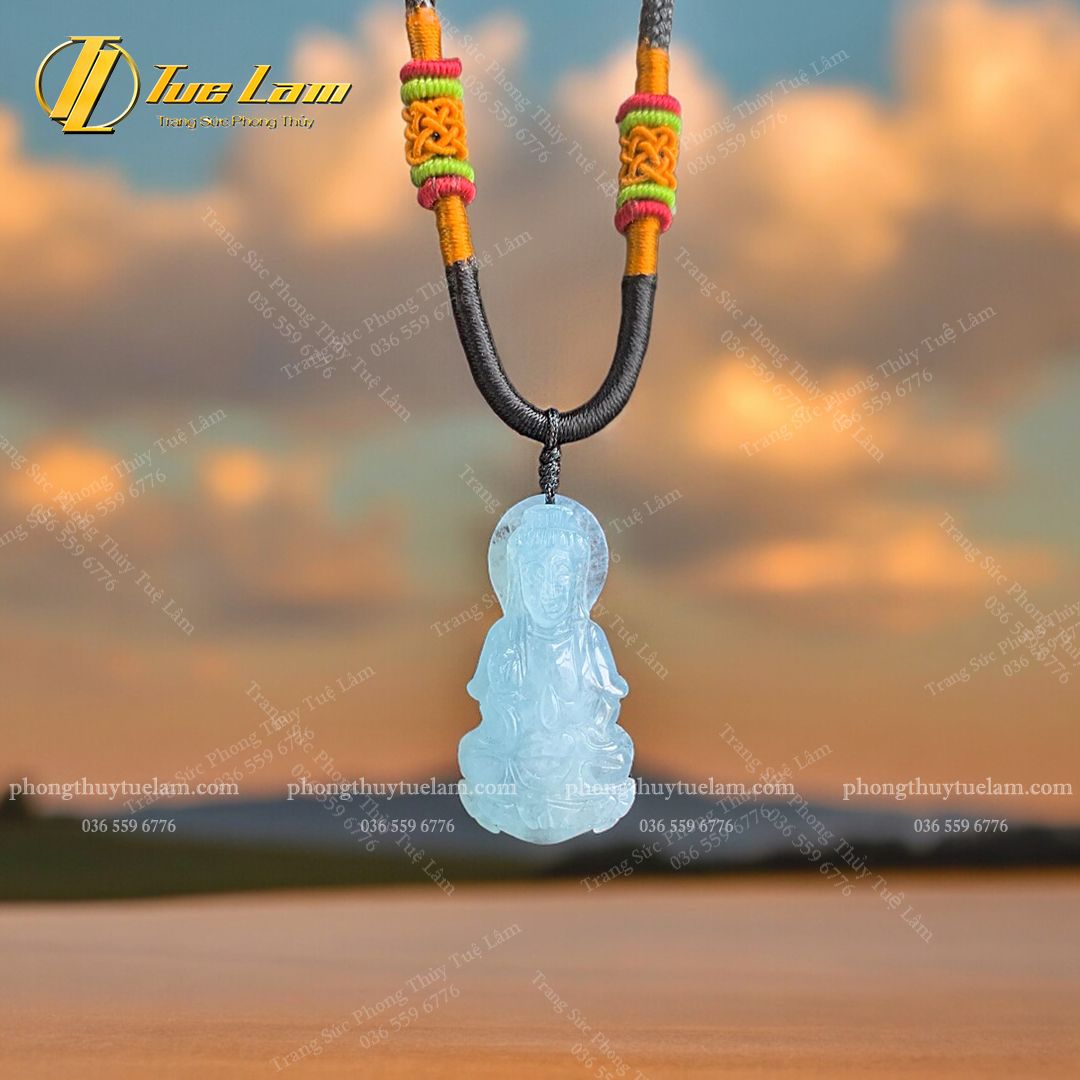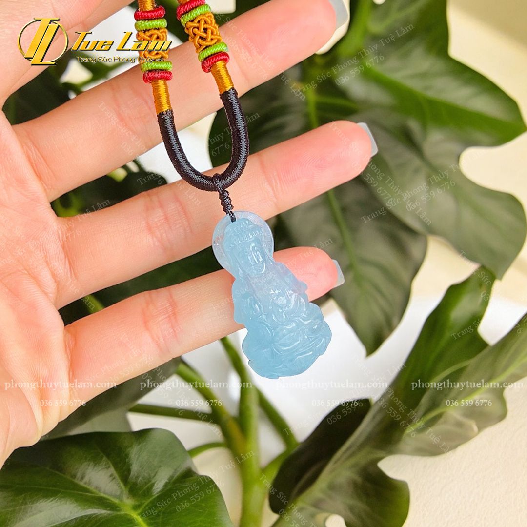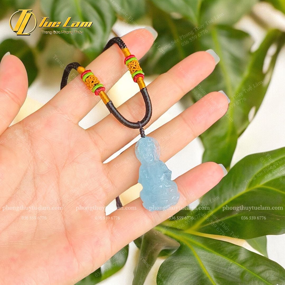 Dây Chuyền Mặt Phật Quan Âm Bồ Tát Đá Aquamarine hợp mệnh Thủy- mệnh Mộc, Bình An May Mắn