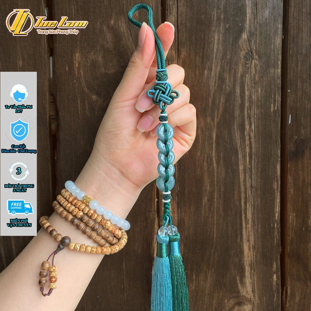 Khánh treo xe ô tô ngũ điếu lam ngọc tài lộc hợp mệnh may mắn bình an