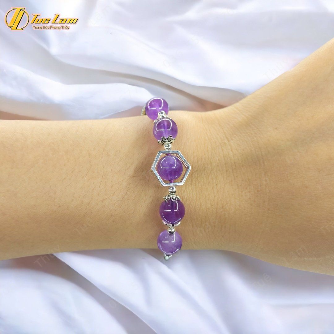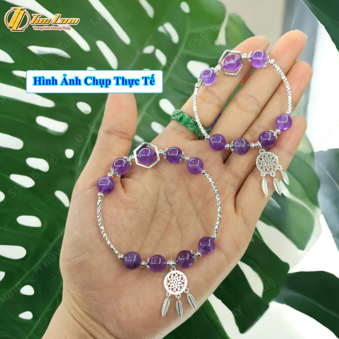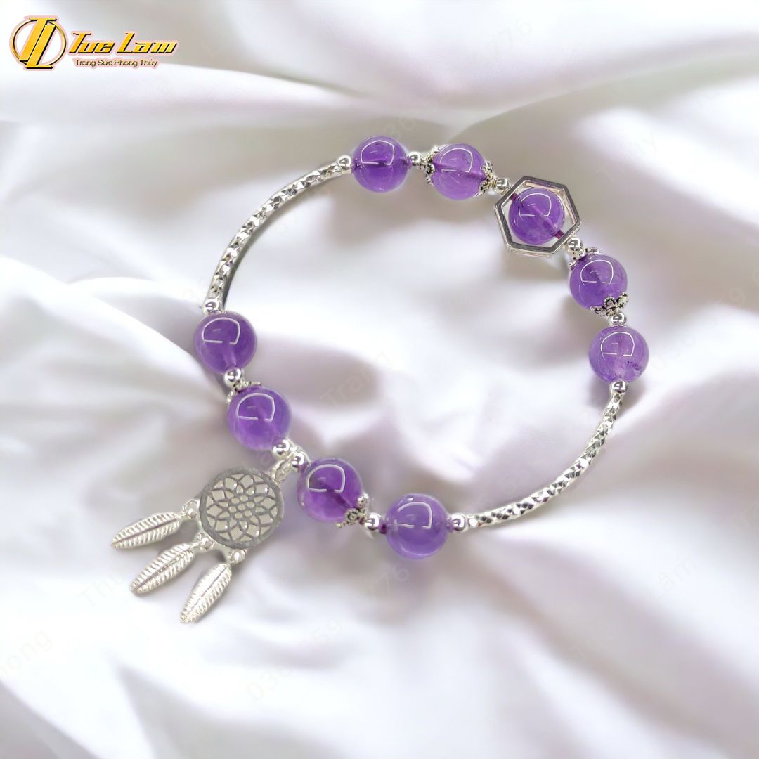 Lắc tay bạc nữ hạt đá thạch anh tím mix charm bạc dream catcher họa tiết xinh xắn may mắn