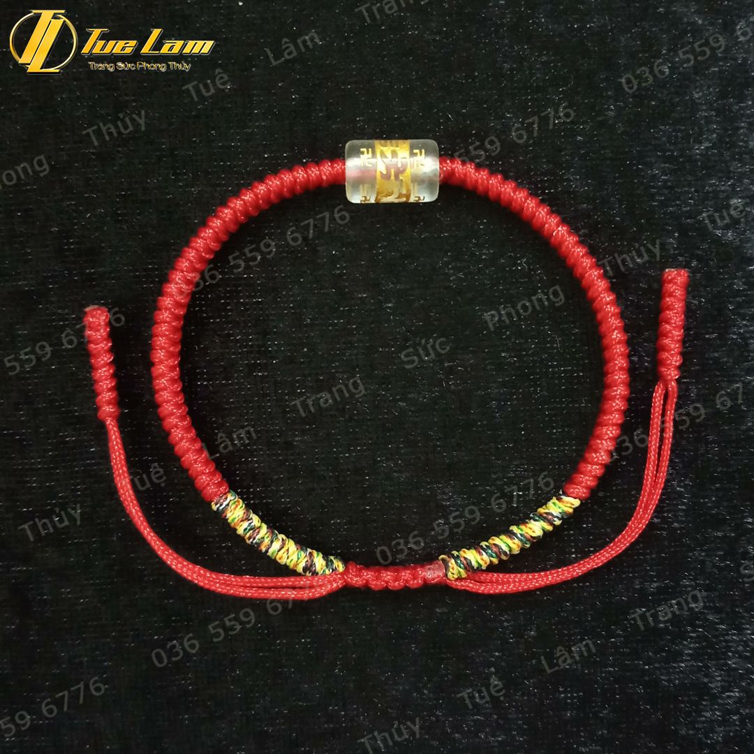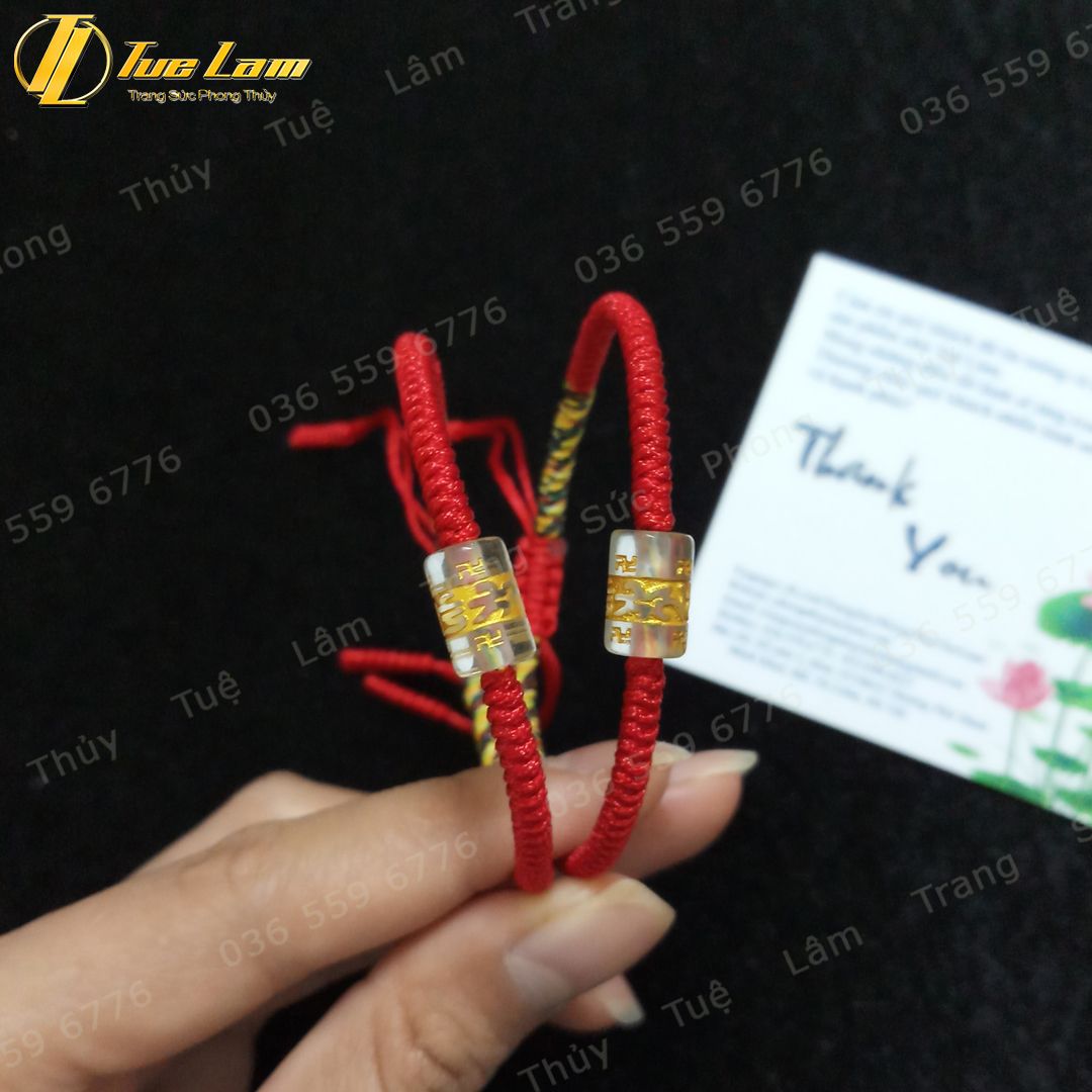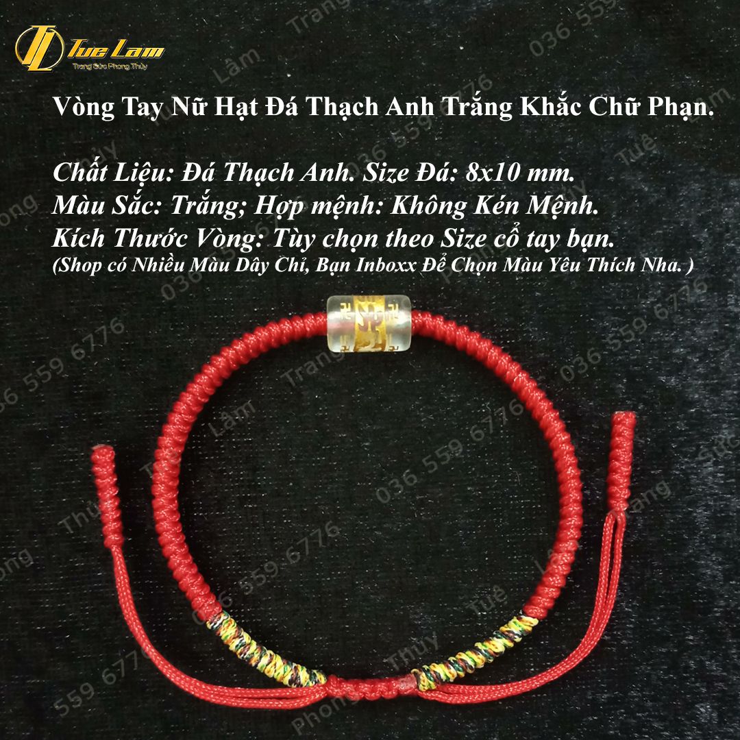 Vòng tay chỉ đỏ may mắn bện handmade hạt lu thống đá thạch anh trắng khắc chú - Tuệ Lâm