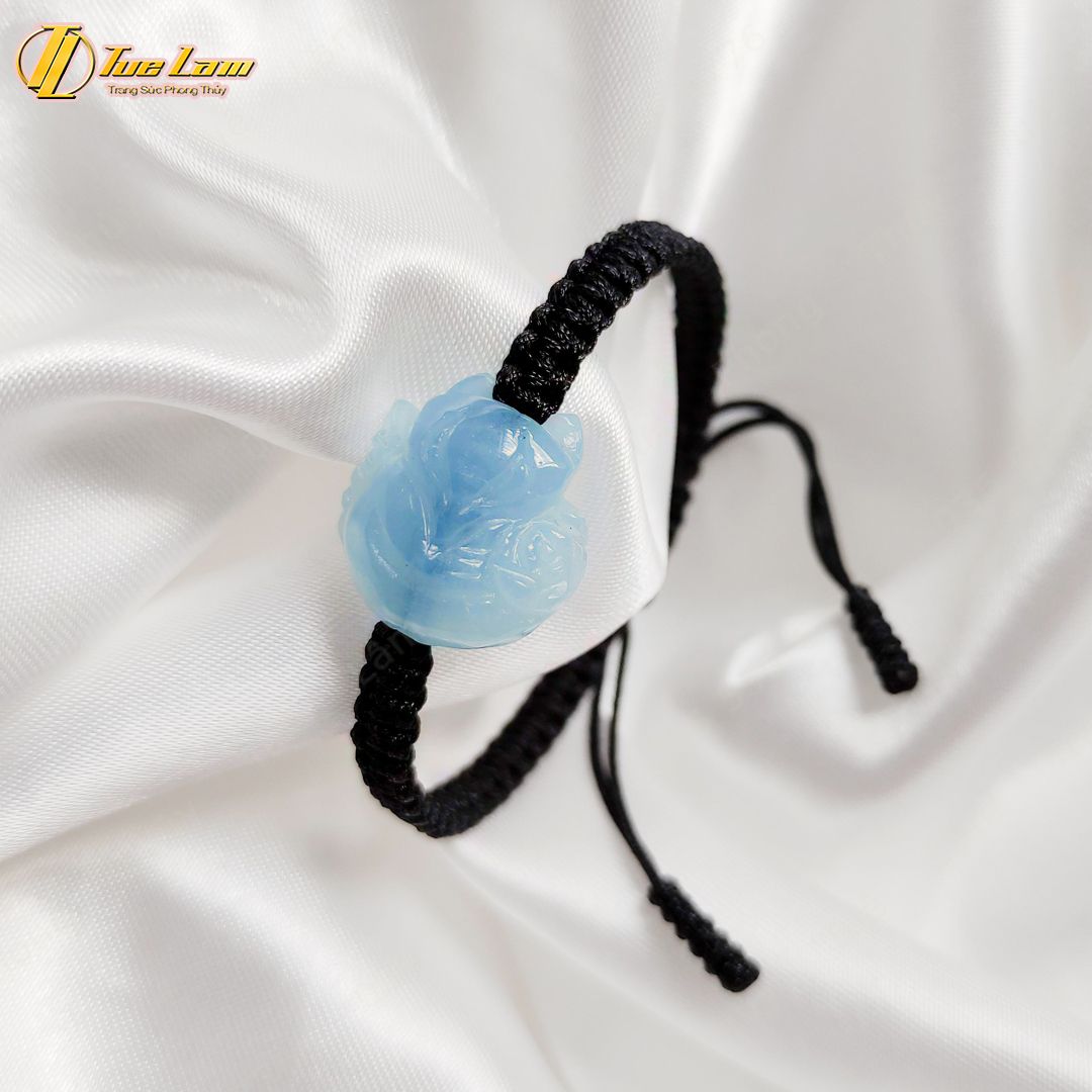 Vòng tay chỉ may mắn bện mặt hồ ly chúa ôm hoa đá aquamarine hợp mệnh thủy mộc trợ duyên