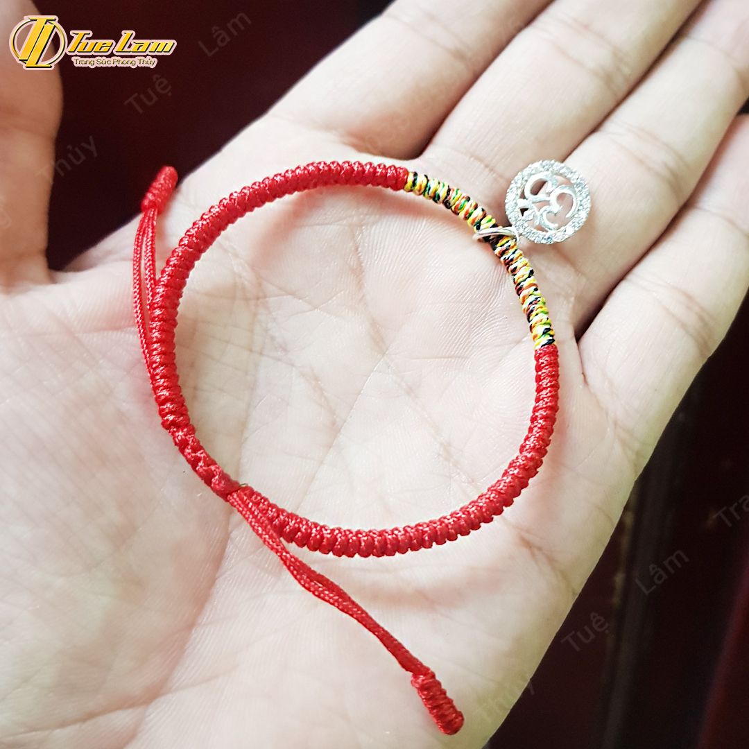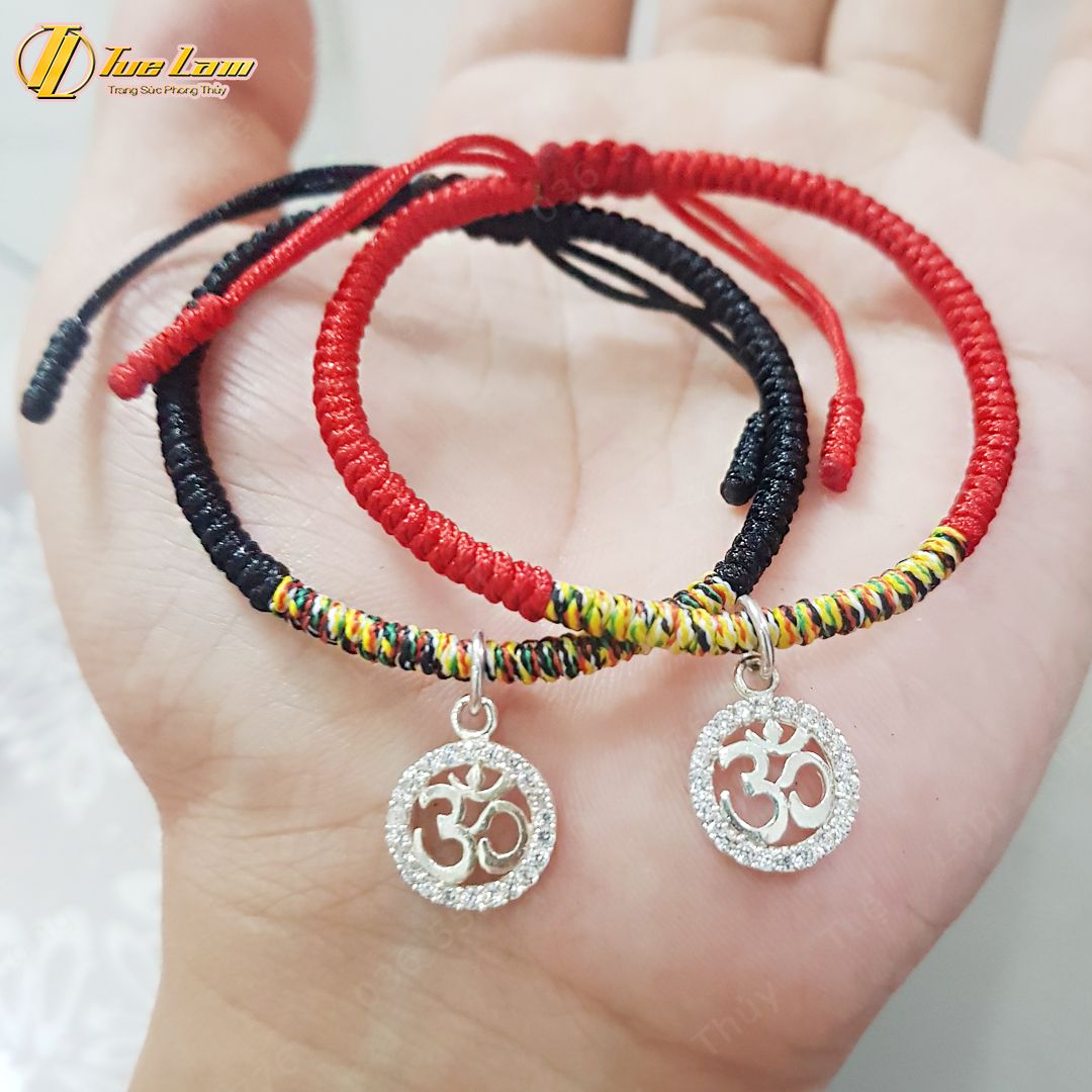 Vòng tay chỉ đỏ bện chỉ ngũ sắc may mắn kiểu vòng tay tây tạng charm OM -Tuệ Lâm