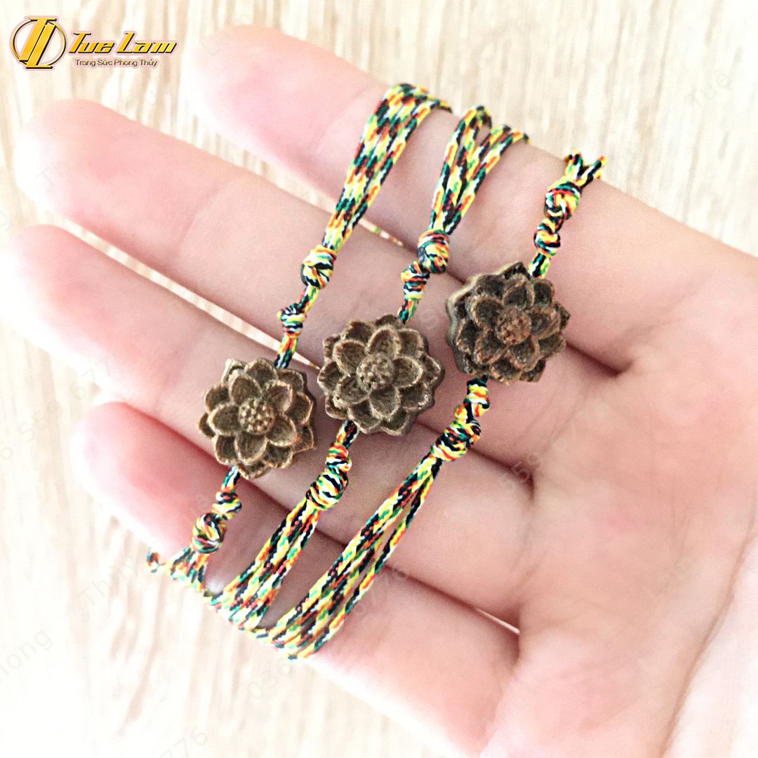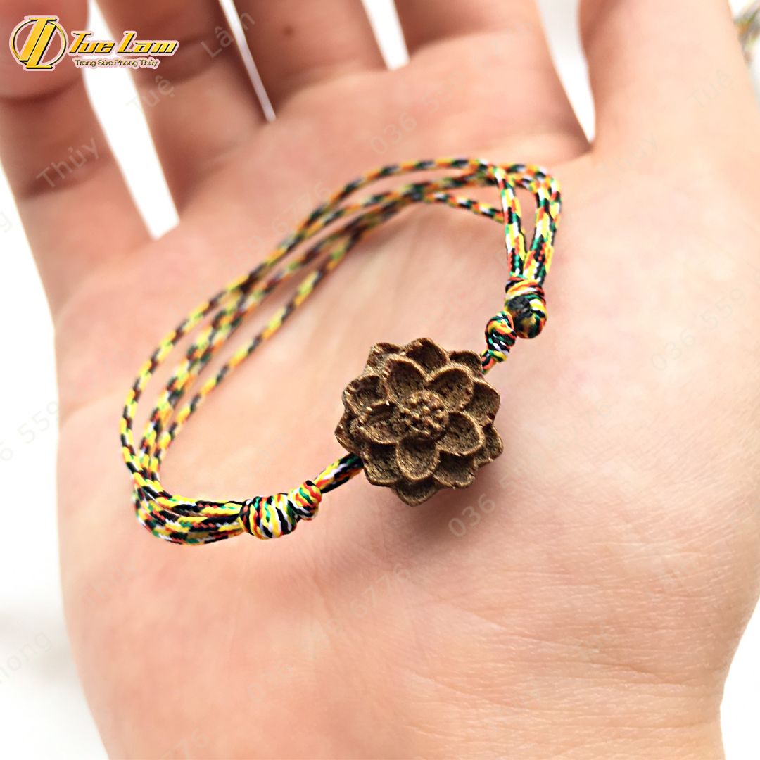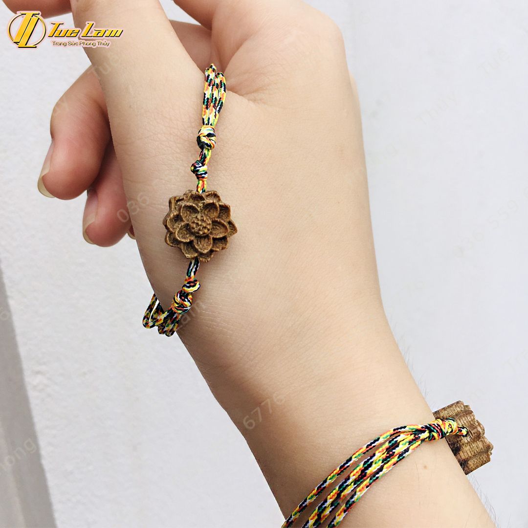 Vòng tay chỉ ngũ sắc tây tạng may mắn mix hoa sen trầm hương tốc thơm dịu nhẹ - Tuệ Lâm