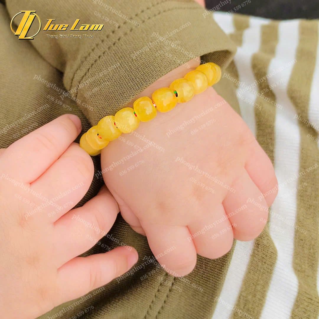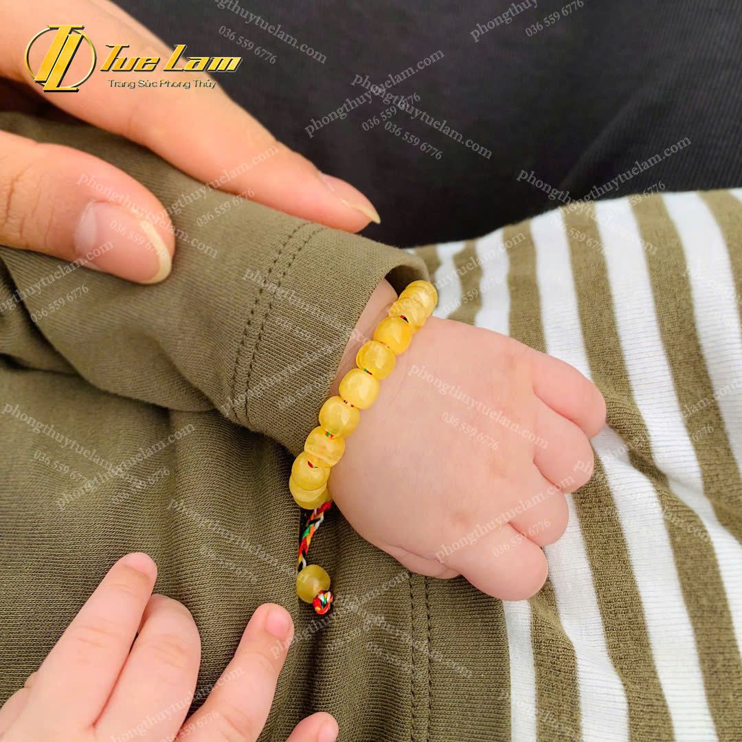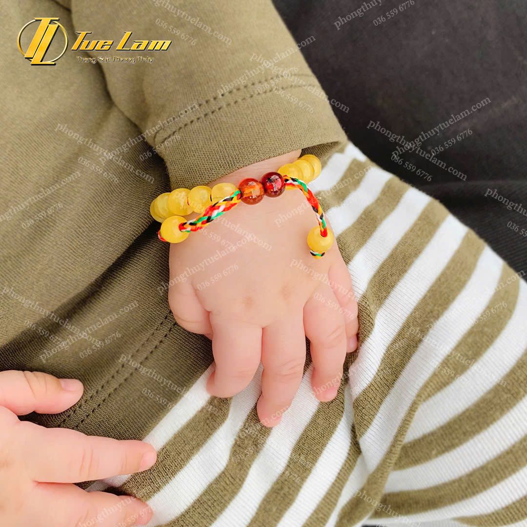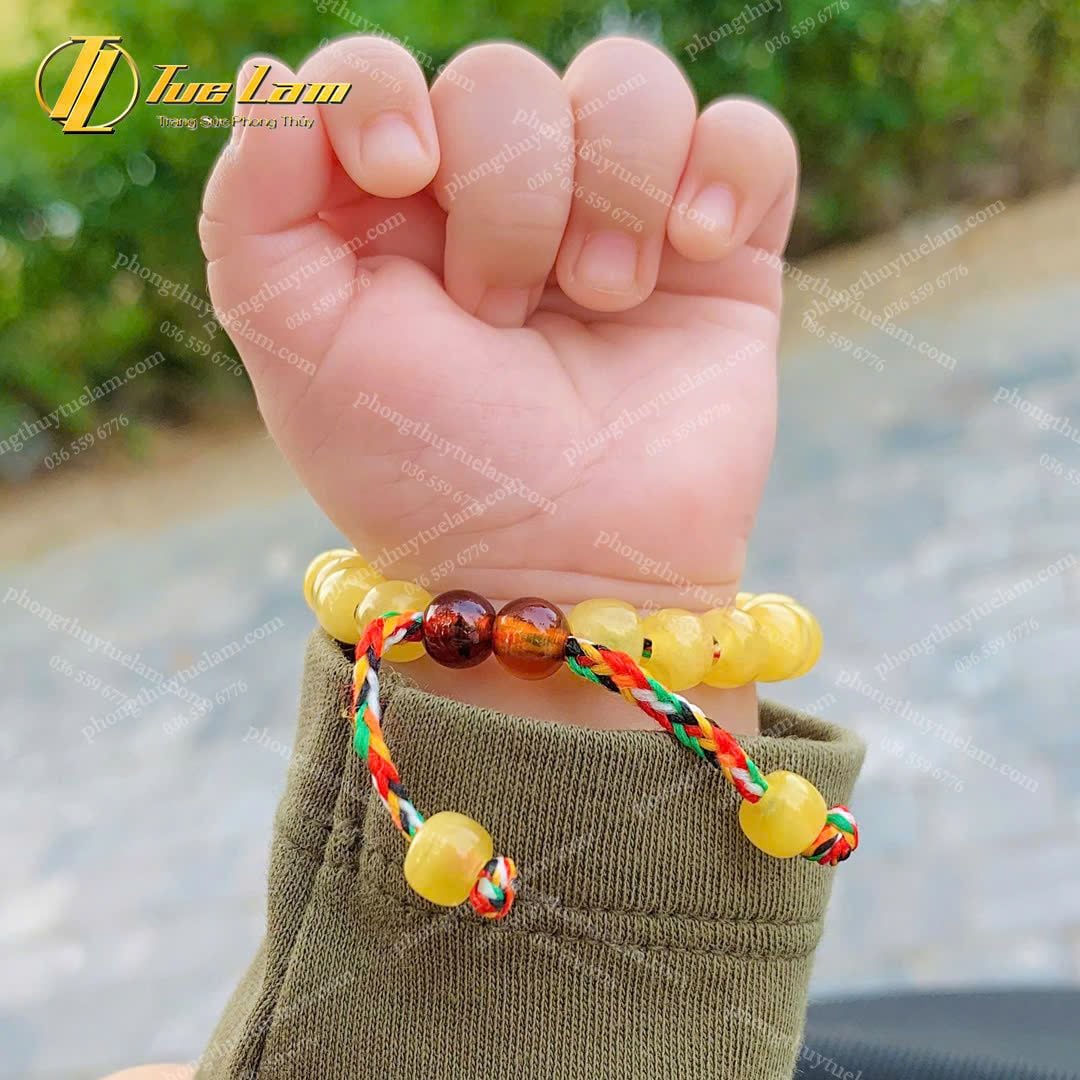 Vòng Tay Cho Bé Hạt Đá Hổ Phách Mật Lạp Mix Chỉ Ngũ Sắc NEPAL May Mắn Bình An