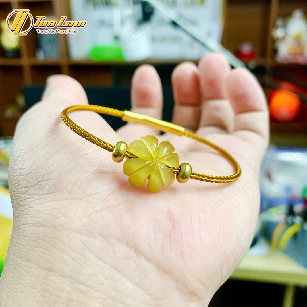 Vòng tay cỏ 4 lá mắt hổ vàng dồng tâm hợp mệnh kim mệnh thổ may mắn bình an