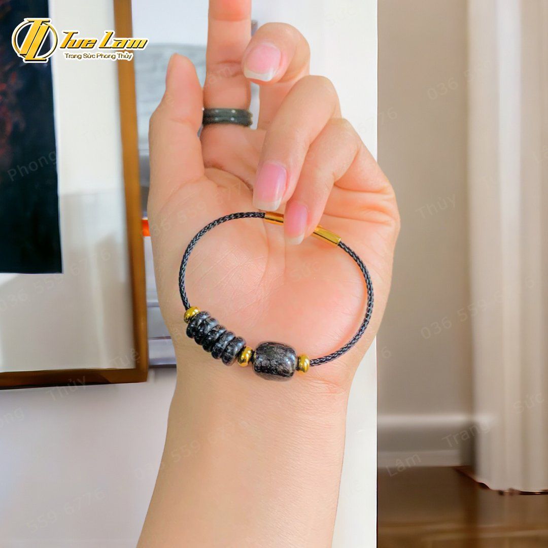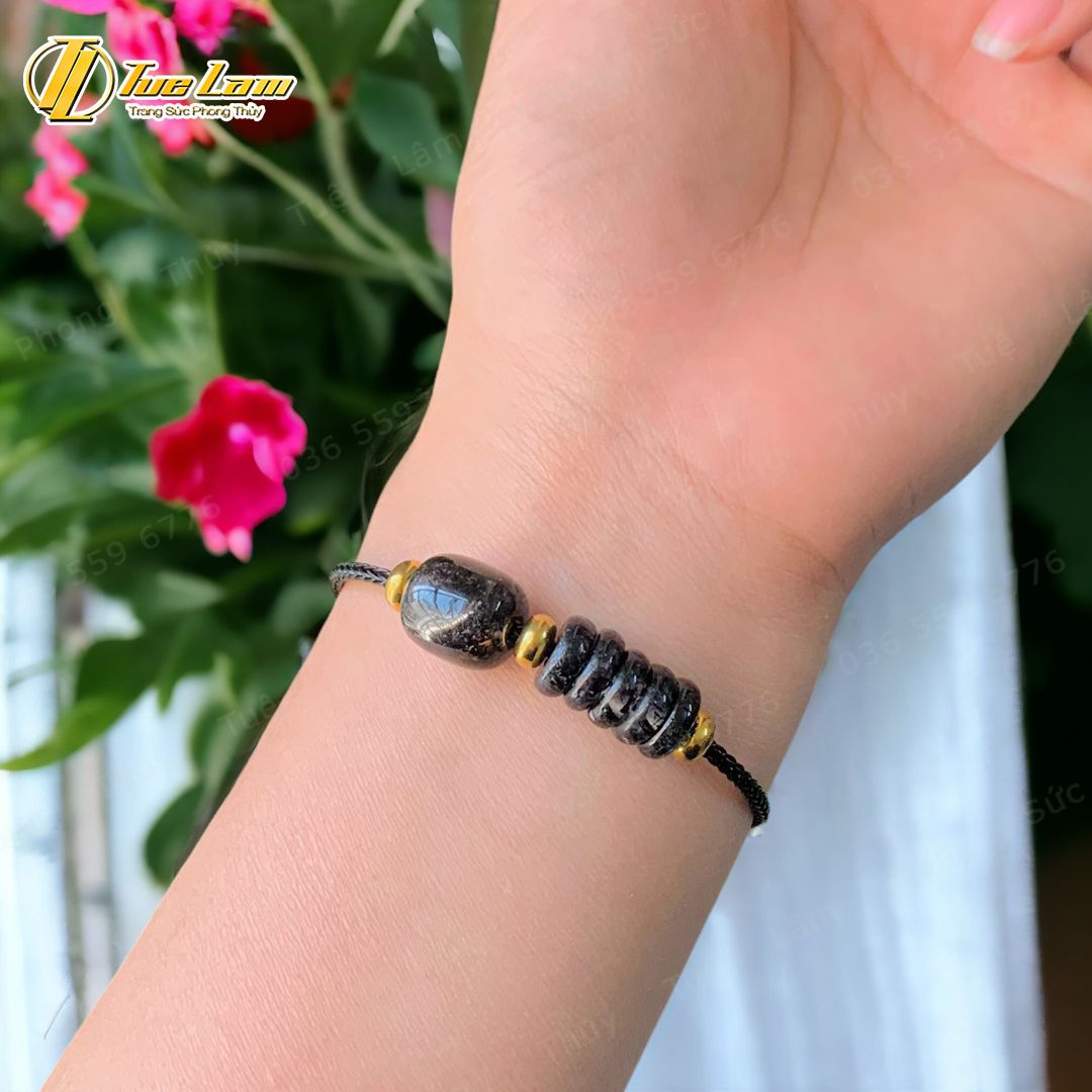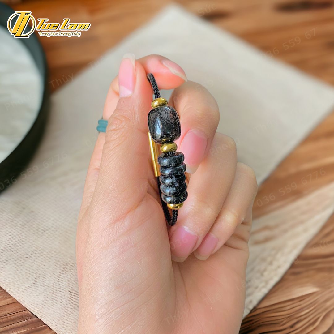 Vòng tay ngũ điếu mix lu thống dáng bầu đá thạch anh tóc đen hợp mệnh thủy mộc tài lộc hanh thông