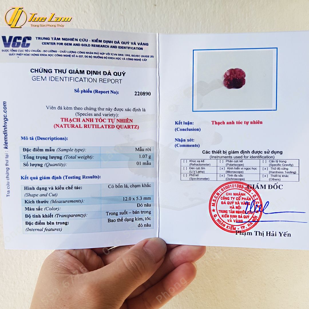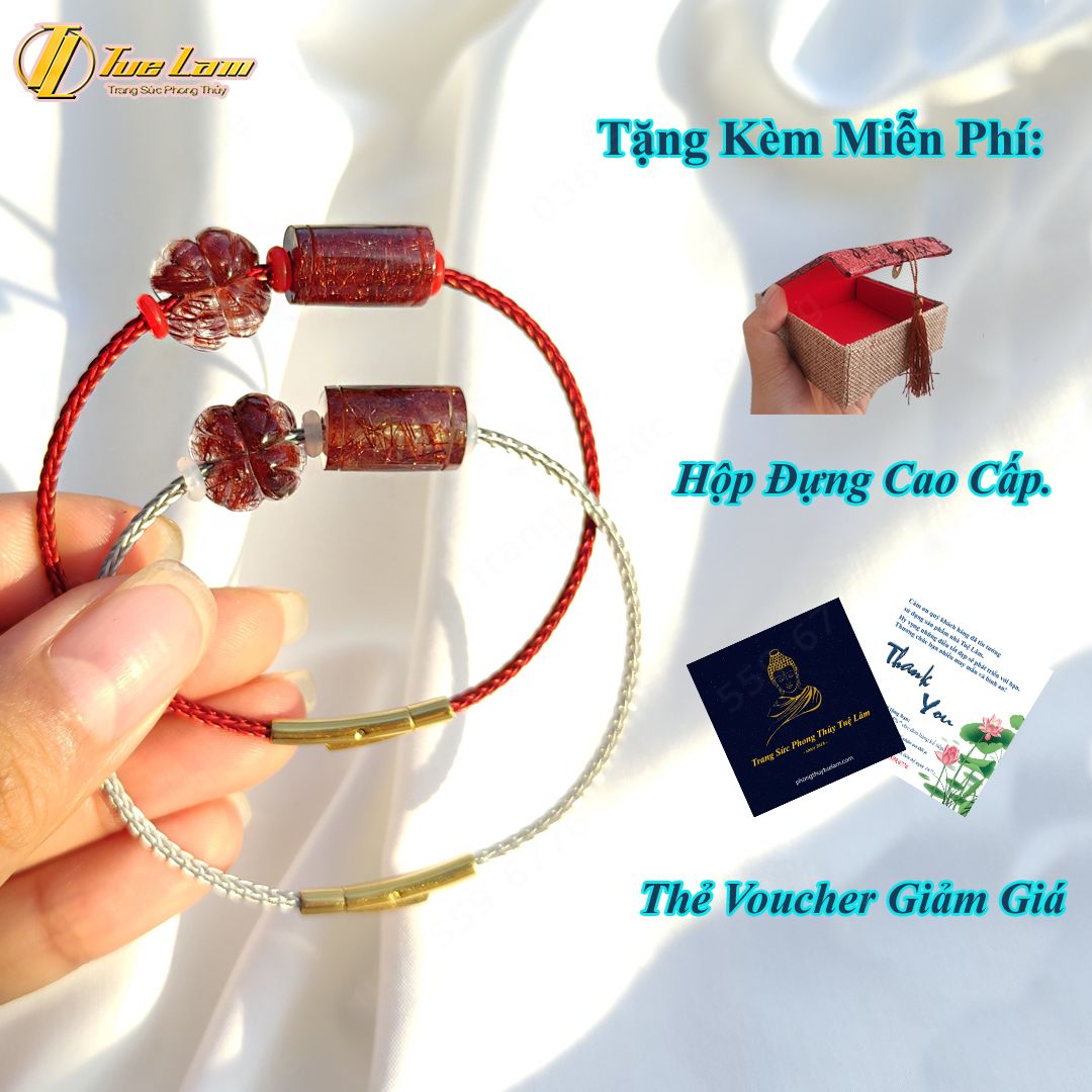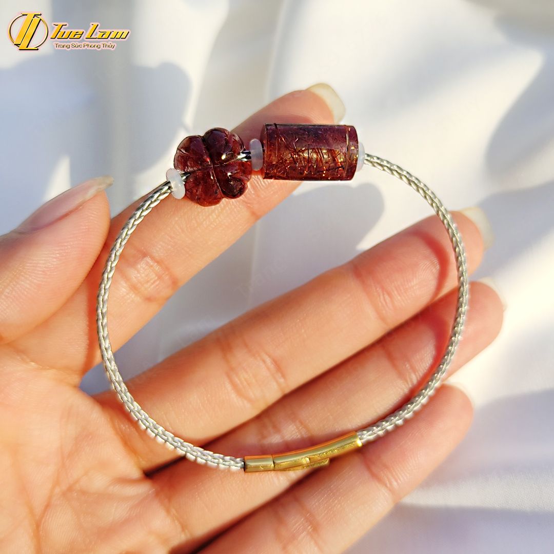 Vòng tay lu thống mix cỏ 4 lá Thạch anh tóc đỏ hợp mệnh hỏa thổ chiêu tài hút lộc may mắn