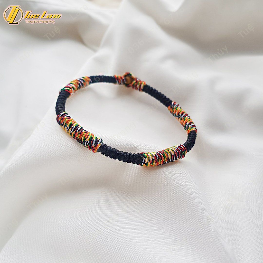 Vòng Tay May Mắn Chỉ Ngũ Sắc Tây Tạng Bện Sole Kiểu Nút Hạt Size To - Tuệ Lâm