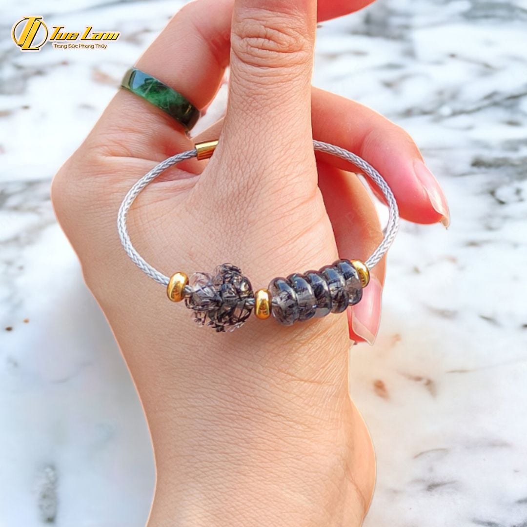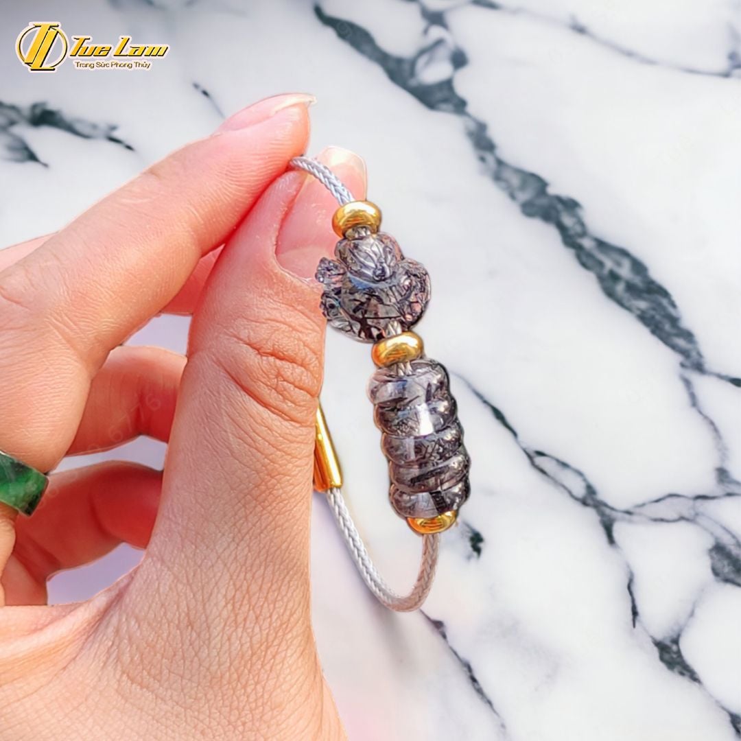 Vòng tay ngũ điếu mix hồ ly chúa ôm hoa đá thạch anh tóc đen hợp mệnh thủy mộc, trợ duyên tài lộc