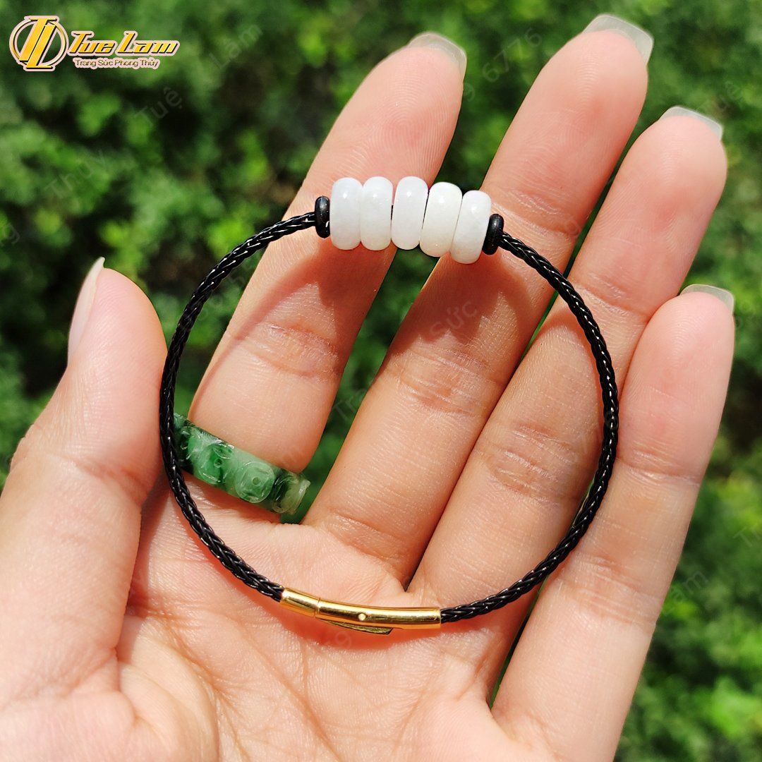 Vòng tay ngũ điếu bạch ngọc hợp mệnh kim thủy chiêu tài lộc gia đạo bình an may mắn