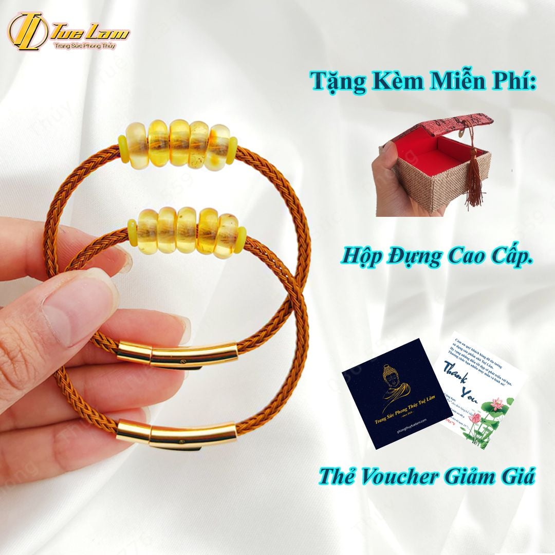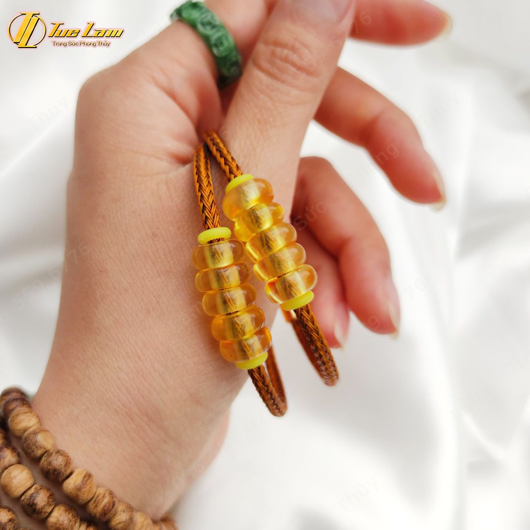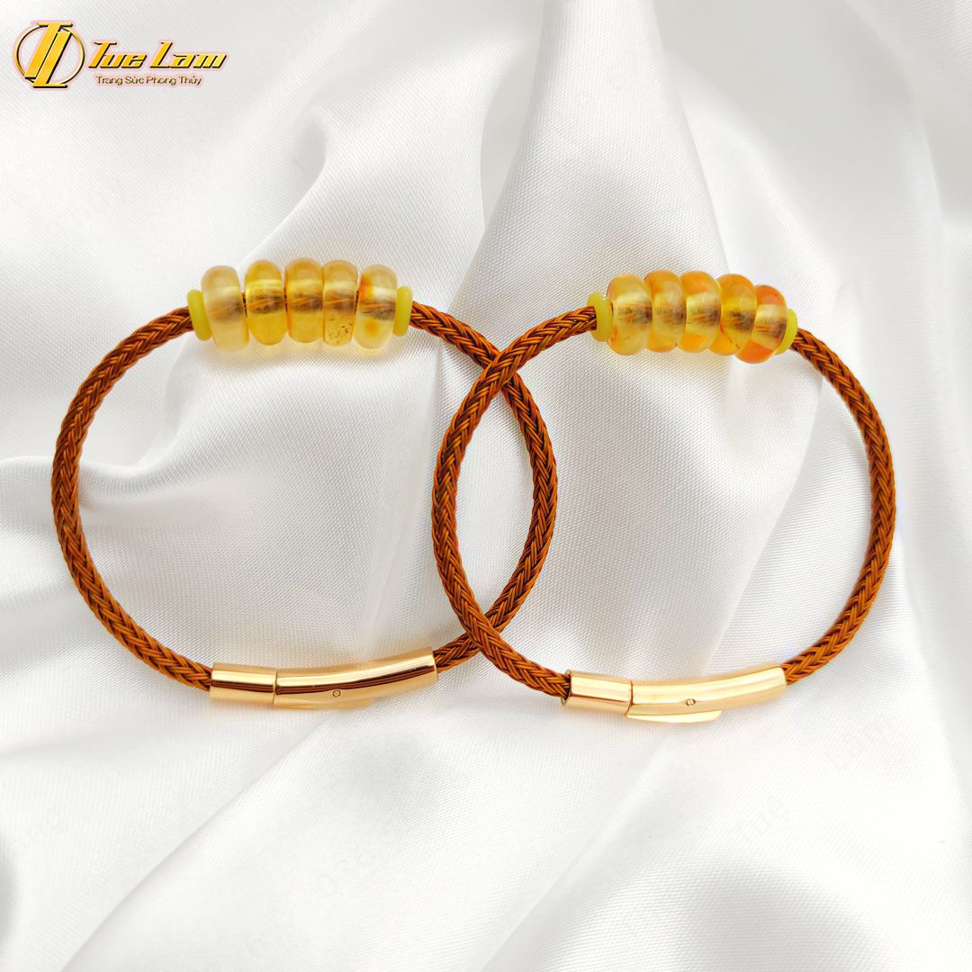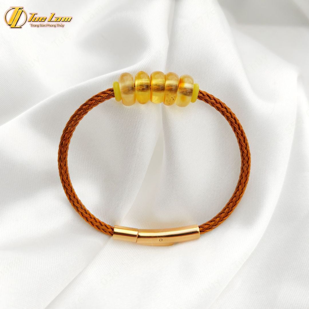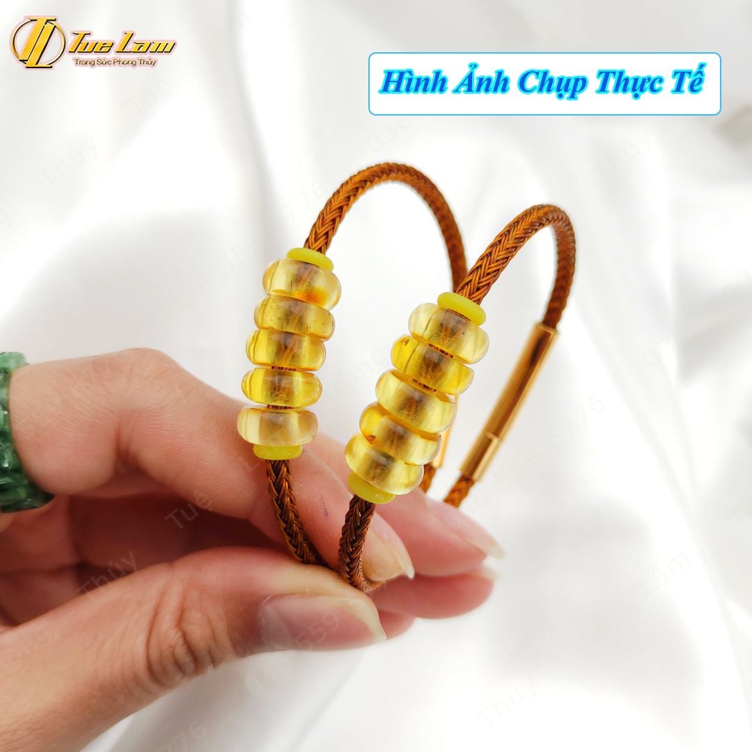Vòng tay ngũ điếu hổ phách tự nhiên hợp mệnh kim thổ, chiêu tài hút lộc may mắn