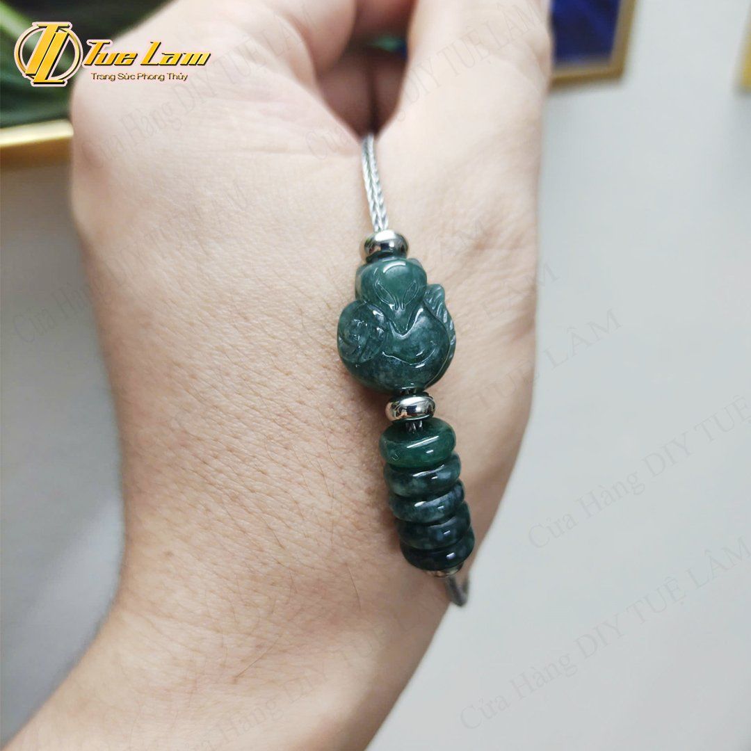 Vòng tay ngũ điếu mix hồ ly chúa ôm hoa lam ngọc hợp mệnh trợ duyên may mắn