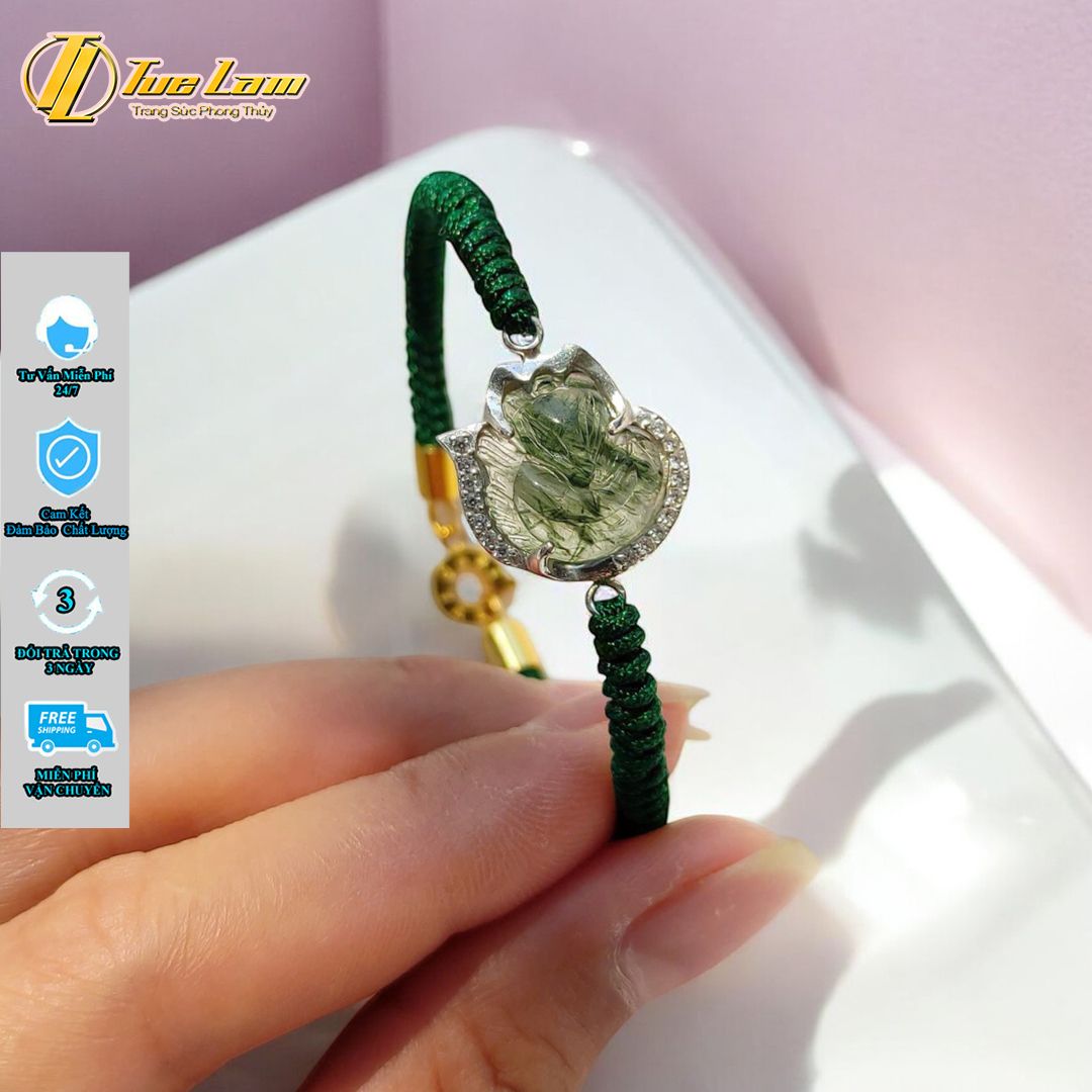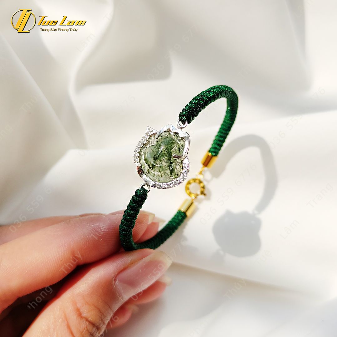Vòng tay hồ ly ôm hoa đá Thạch Anh tóc xanh bọc bạc hợp mệnh mộc hỏa bện chỉ hadnmade bền đẹp